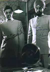 | #4195 Octpussy US $ 279.00 Awsome 8x10 bw shot as PRINCE KHAMAL KAHN and GOBINDA IN OCTOPUSSY. Super signed by Louis Jourdan AND Kabir Bedi. A fantastic shot!!! Jourdans signature was obtained by us directly in August 2001 and Kabir Bedi was also obtained by us directly in April 2001. Buy with confidence from B'BC. VERY RARE COMBINATION. |