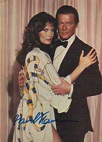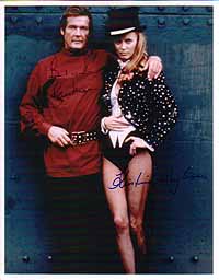 | #4922 Octopussy US $ 229.00 Awsome piece! 8x10 color shot as 007 James Bond (Roger Moore) and Magda (Kristina Wayborn). Signed by both!!! Very rare shot and combination of signatures. |
