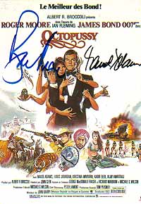 | #4568 OCTOPUSSY US $ 249.00 AWSOME 8x10 color newspaper shot from Roger Moore as 007 James Bond and Maud Adams as Octopussy herself. Super signed in-person by BOTH at the Octopussy premiere in Germany. A really rare piece with signatures exactly from the time of this bond movie!!! |