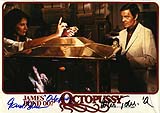 | #2690 Octopussy US $ 249.00 8x10 color original lobby card from Octopussy. Pictured are "Khamal Khan" aka Louis Jourdan and "MAGDA" aka Kristina Wayborn. Signed by both!!! Louis Jourdan signed with his name and Kristina also withe her character name and 007!!! Very rare combination of signatures to get. Both signatures from a private collector obtained trough the mail. |
