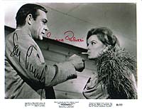 | #4115 THUNDERBALL US $ 449.00 Fantastic 8x10 bw behind the scenes shot from THUNDERBALL, jointly signed by Martine Beshwick (in-person GB coll.show) AND SIR SEAN CONNERY (signed for the Multiple Sclerosis Society of GB for charity!). EXTREMELY rare combination of signatures. |