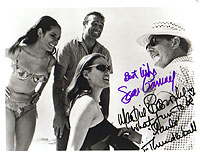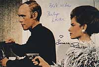 | #5178 Thunderball $ 379.00 Very rare 8x10 color shot from Philip Locke as Vargas and Luciana Paluzzi as Viona Volpe in Thunderball. Awsome signed by Philip Locke (who stopped signing long ago). His signature was obtained directly from him some years ago. Also signed by Luciana Paluzzi in March 2003 within her private signing for us. She signs for b'bc world exclusive by contract!!! Very very rare combination. |