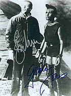 | #1891 A VIEW TO A KILL US $ 279.00 Super rare 8x10 bw shot from Roger Moore and GRACE JONES in Octopussy. I have never seen this shot signed before!!!! Boldly signed by Roger Moore in silver and Grace Jones in blue. Terrific item!!! From a GB Top Source. |