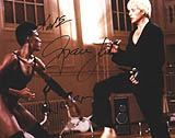 | #2465 A VIEW TO A KILL US $ 279.00 8x10 color shot from the Karate Scene in A VIEW TO A KILL. Pictured are MAY DAY (Grace Jones) and ZORIN (Chris Walken). Terrific signed by Grace Jones AND Chris Walken. VERY RARE!!! Obtained from a very reputable dealer in USA. |