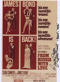 We are pleased to present our EXCLUSIVE selection of autographs from Eunice Gayson who played the role of Sylvia Trench in Dr No and also in FROM RUSSIA WITH LOVE. Eunice signed these autographs directly for b'bc in November 2003 in UK!