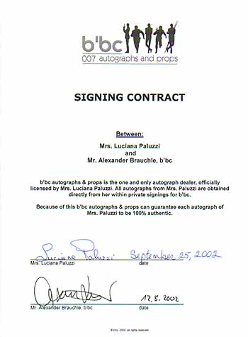 WORLD EXCLUSIVE B'BC SIGNING CONTRACT WITH LUCIANA PALUZZI b'bc Official LICENSED LUCIANA PALUZZI Autographs |