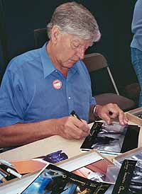 What a 007 related rarity! We did a private signing with Dave Prowse (world famous for his role as Darth Vader in Star Wars) who also played "Frankenstein" in James Bond's "Casino Royale". Wonderful 8x10 color shot from Casino Royale with David Niven as 007 James Bond. Awsome signed in-person for us in April 2004 and he added also "Frankenstein Casino Royale" to his signature! He is extremely rare and highly valueable. The market is flooded with FAKE Star Wars autographs of him. Bond signed autographs even did not exist till we did the signing now! Very limited quantities!
