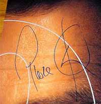 Awsome rare original year (1999) cinema poster from TOMORROW NEVER DIES. Wonderfully signed by Pierce Brosnan in-person on November 4, 2004 outside the ABC studios in New York City. Piece was being interviewed live at "Good Morning America" to promote the release of "After The Sunset". He is very very tough to find on original cinema posters as it is a big hassle to get posters signed in-person! Take the chance!