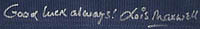 What a RARITY find! We were able to aquire now an actual production used "chairback" from Lois Maxwell which was fitted on her director's chair in a production. She even has handsigned the chairback wonderfully in silver: "Good luck always: Lois Maxwell". These chairbacks are normally impossible to get, especially as it must be many years old! Would make a wonderful discussion piece when you fit it to a director's chair! Highly valueable hero prop as Lois Maxwell has retired from the 007 films a long time ago and also stopped signing totally meanwhile!