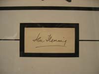 WE COULD AQUIRE A HOLY GRAIL DISPLAY PIECE FROM A VERY FINE PRIVATE +30 YEARS COLLECTION! Vintage 5x3 album page, signed by IAN FELMING(dec.). An extremely rare and highly sought-after signature. This awsome Fleming signature was matted and framed with a TOP RARE original limited Ian Fleming artwork (no.60 of 200) of the artist G. Almond who has numbered each of the artworks by hand and signed the artwork also by hand! Wonderfully matted and framed with acid free materials to museum standard. An incredible nice Ian Fleming display!