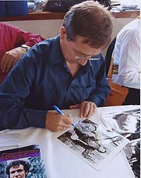 Fantastic 8x10 bw shot as 007 James Bond in Octopussy. Wonderfully signed by Roger Moore in-person in USA for a UACC board member. Very rare shot. Now we got this shot also signed by David Meyer, the twin Mischka/Grischka, who throw the knife on the shot. He signed in-person for us on 23/24 September 2006 at Kempton Park, UK. A very very rare combination of signatures! Great signature photos are included where the sigs are perfectly to see!