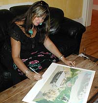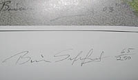 Extremely rare REALLY BIG artwork "AN UNINVITED GUEST" by Brian Sapsford. This is a fantastic print by former Isle of Man TT racer and motor sport artist Brian Sapsford, featuring James Bond in his awesome Lotus Esprit, dodging the gunfire from "Naomi" (Caroline Munro) in her helicopter from "The Spy who loved me". The print, measuring approx 25 x 21 inches (64 x 48cm) has been signed and numbered by the artist Brian Sapsford (Number 66 of ONLY 250 ever made!!!), and also signed personally by the movie's Femme Fatale Caroline Munro at a private signing in London 2004. A ONE OFF CHANCE!