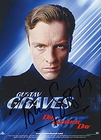 3 extremely rare original 8x6 postcard color shots, pictured are all three BOND VILLAINS from DIE ANOTHER DAY, each one authentic signed by 1) Rick Yune (Zao), 2) Rosamund Pike (Miranda Frost) and also signed by Toby Stephens (Gustav Graves). The stars signed these shots right after release of Day Another Day only. So they are very rare. A great Triple Display villains piece for DAD. A real one off set!