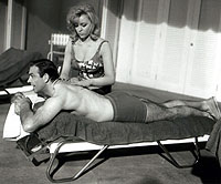 1964, gold-coloured tubular metal frame with white-painted slatted top and adjustable back-rest, 170cm (67in) long, 61cm (24in) wide. These sun loungers, together with matching chairs, are present in the early scenes set around the Miami hotel swimming pool. Bond is being given a massage by Dink on one of the loungers just prior to CIA agent, Felix Leiter, informing Bond of his next assignment. This major prop from Goldfinger as perfect clear provenance: It was a gift, in 1967, to my vendor's parents from the sister of Ken Adam (the most famous James Bond film set designer!!!). A one off chance in your life! Original Goldfinger props are virtually impossible to find todays! Something very very special for your collection!