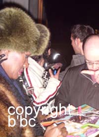 Very rare 8x10 color shot as May Day in A VIEW TO A KILL. Awsome signed by Grace Jones in-person for us on March 17th, 2009 at the backstage entrance of the Tempodrom in Berlin,Germany when she came out after her concert. She came out very very late at 3.a.m and was again pretty drunk like when she was here in Germany at the Goldene Kamera event in Berlin,Germany in 2004. She signed wanted to sign only one for each collector and inscribed. Only the last ones she signed without inscription. The inscription of this one was taken off professionally! She is a strange personality and a very tough signer meanwhile! Get this wonderful in-person example and have a look at our candid shot from the signing at the Tempodrom!