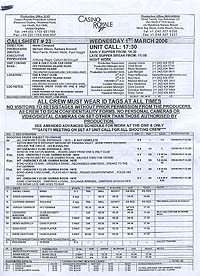 A top rare prop from the brandnew 007 film CASINO ROYALE which will be released in November 2006! Original gambling poker chip production made for the film and used in the Casino Scenes. The chip comes with a callsheet of exactly the day the Casino shoot was done and where these chips were used! One of the first bigger and important props we got from the new film! Beware as when the film is released in November the market will be flooded with Replica Chips sold as the real thing (like with the License To Kill chips)! Get a 1000% good one as we got already now before any replicas could be produced!