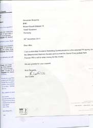 We got hold of an TOP RARITY QUANTUM OF SOLACE ORIGINAL DANIEL CRAIG WORN AND OWNED CREW JACKET! Wonderful rare crew Jacket from Daniel Craig which he even autographed on the inside fleece lining! This jacket has flawless history information as given officially by his Public Relations agency! The jacket was given to the Shipwrecked Fishermen and Marines Royal Benevolent Society of GB. They approached Daniel's PR agent (Premier PR UK)to see if hi would like to support the Charity by participating in an underwater photograph. Daniel was unable to take part personally but did want to support the Charity so offered to send two signed crew jackets from the QUANTUM OF SOLACE film to be auctioned to raise money. We got these two jackets directly from the Shipwrecked Fishermen and Marines Royal Benevolent Society of GB including paperworks from them for us to proof its history. Also included is a second letter from Acceleris Marketing Communications which was the retained PR agency for the Shipwrecked Marines Society and sourced the Daniel Craig jackets from Premiere PR. And last but not least the shipping note from Premiere PR and the complete e-mail conversation of all parts involved in this is added also. Better history proof you cannot get for any piece! Own a major piece from Quantum of Solace and which belongs personally to Daniel Craig! A one-off chance in a collectors life!