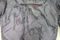 We got hold of an TOP RARITY THE WORLD IS NOT ENOUGH ORIGINAL PIERCE BROSNAN AUTOGAPHED CREW JACKET! Wonderful rare crew Jacket from THE WORLD IS NOT ENOUGH. THIS CREW JACKET WAS SIGNED BY PIERCE BROSNAN WONDERFULLY FOR A CREW MEMBER OF THE FILM. THE CREW MEMBER GAVE THE JACKET THEN TO A CHARITY AUCTION IN GREAT BRITAIN. THE JACKET COMES ALSO WITH THE FLYER OF THE CHARITY AUCTION! PIERCE SIGNED THIS PIECE IN A WONDERFUL WAY: TOP CLEAR FULL SIGNATURE AND ADDED ALSO 007. BIG BOLD SIGNATURE ON THE BACKSIDE OF THE JACKET. SUCH A FANTASTIC SIGNATURE IS NORMALLY NOT TO FIND FROM PIERCE BROSNAN. EVEN AN UNSIGNED TWINE CREW JACKET WOULD BE WORTH A LOT OF MONEY. THIS SIGNED ONE IS A REAL PERFECT PIECE OF BOND HISTORY WITH CRYSTAL CLEAR HISTORY. A one-off chance in a collectors life!
