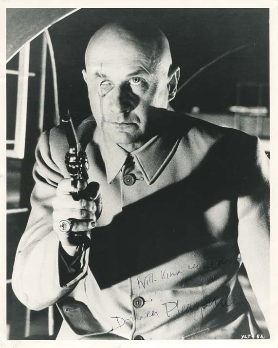 Awsome 8x10 bw vintage press still shot as ERNST STAVRO BLOFELD in YOU ONLY LIVE TWICE. Wonderfully signed by Donald Pleasance in black ballpoint.He added also "with kind regards" to his signature. Donald Pleasance is extremely rare on BLOFELD PRESS STILL SHOTS and even more on such a one of a kind photo! Obtained from a private collection.