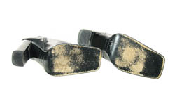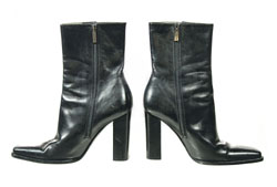 Another top rare find: Elektra King's black leather heels worn in the 1999 Bond movie The World Is Not Enough. The daughter of oil tycoon Sir Robert King wore these 'Sergio Rossi' boots was part of a sophisticated trouser suit, and can be seen in a great behind the scenes photo of Sophie Marceau playing football on page 80 of 'The World Is Not Enough – A Companion' by Iain johnstone. The ankle-high shoes (size 39) feature a black zipper on the inner edge, 4” heels and a straight toe, and exhibit a fair amount of wear on the soles through production use.