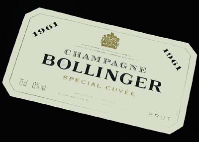 We could aquire a very rare hero piece from DIE ANOTHER DAY - which is an importan part in ever James Bond film. The Bollinger champagne! A production made Bollinger Champagne label from the 2002 James Bond movie Die Another Day starring Pierce Brosnan as the suave secret agent. Bollinger has been THE choice brand sipped by Bond throughout the various movies and even mentioned in the Ian Flemming novels, 1961 being a particularly vintage year. This was created as a back-up in case the label from the bottle on screen was damaged by the ice and water complete with the Royal crest and raised lettering. The instantly recognisable label measures 11cm x 6cm (4.5” x 2.5”) and still in excellent condition. A one-off chance to own a real Bond prop associated with his famous champagne Bollinger!