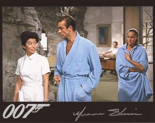 First time signer ever! Super Rare Dr. No Girl! Fantastic 8x10 color shot of Yvonne Shima who played the role of Sister Lily in Dr. No.She never signed before! Signed in-person within a private signing in September 2013 in London. We got her directly from the official signing organizer. She is one of the rarest Bond Girls to find as she did never a signing before. Awsome shot and wonderfully signed by her in the best location of the picture. Buy with confidence from b'bc