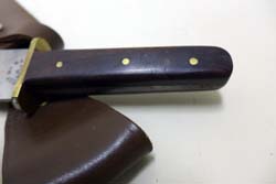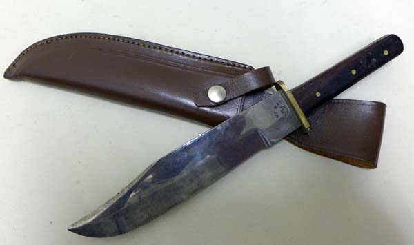 A one-off chance! We could acquire Barrie Winships personal used Octopussy hero throwing knife, used by him in Octopussy. Barrie Winship was the real knife thrower in the James Bond film Octopussy film.The original intention was for him to teach the Meyer twins to knife throw but it soon became apparent that wasn't feasible so he was made up to look like them and did all the sequences. Barrie cam from a circus family which formerly had Winships Circus in the UK. He began his knife throwing act in 1966 and was approached to be the stunt co-oridnator in Octopus in 1982. This knife was one of the knives commissioned by him, from a place near Worthing especially for the film. The shank of the knife has been filed down, as all of the REAL THROWING knives were. So he could hold them all in one hand in the film. In the movie you can see that the Meyer twins wear a black glove on one hand. That was Barries request as it was to stop the filed down knife cutting into his hand. This knife was held by Barrie after the production of Octopus till today and we got it now directly from him. A personal letter of authenticity of Barrie is included with the knife. Also a photo signed by Barrie which shows him with the twins in the Octopus twins and also a second photograph of him sitting at his table with the knife and signing autographs for b'bc. A wonderful piece of Bond history with crystal clear fully confirmed history!
