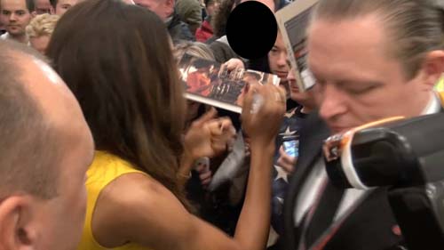 The new Bond "Moneypenny" Eve! Awsome 8x10 color shot from the James Bond film SKYFALL. Naomie Harris as EVE, the new " Miss Moneypenny " in Skyfall. Wonderfully signed by her in-person for my Star chaser in Berlin at thge Omega Watch Promotion /opening of Bond Exhibition at the KADEWE in Berlin Germany on 28.10.2015 (the afternoon before the german Spectre premiere). This is a very Special one as my star chaser got even a shot from a photographer who made a Picture exactly of signing this Piece for us. Also my star chaser could do later at this Event a selfie with naomie!!! Perfect provenance and the buyer gets also the photo proof shot of signing exactly this item.