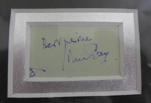 WHAT A RARE ONE! Fantastic color shot OF JOHN GAY (+) AS HAMMOND IN ON HER MAJESTY'S SECRET SERVICE.. EXTREMELY RARE AUTOGRAPH ON AN ALBUM PAGE AND PERFECTLY TRIPLE MATTED WITH A COLOR SHOT SHOWING HIM IN THE 007 ADVENTURE. READY TO FRAME AND HANG ON YOUR WALL! FOR THE SCANS WE DID NOT UNPACK THE MATT SO YOU SEE IT TROUGH THE PLASTIC FOILE WHICH PROTECTS THE MATT. WITHOUT THE PLASTIC FOILE IT LOOKS OF COURSE WAY BETTER! TAKE THE CHANCE AS THIS IS A REAL ONE-OFF PIECE!