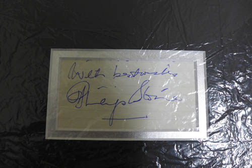 Fantastic color shot OF PHILIP STONE (+2003) AS SPECTRE #5 IN THUNDERBOLT. HE IS VERY RARE MEANWHILE. VINTAGE AUTOGRAPH ON AN ALBUM PAGE AND PERFECTLY TRIPLE MATTED WITH A COLOR SHOT SHOWING HIM IN THE 007 ADVENTURE. READY TO FRAME AND HANG ON YOUR WALL! FOR THE SCANS WE DID NOT UNPACK THE MATT SO YOU SEE IT TROUGH THE PLASTIC FOILE WHICH PROTECTS THE MATT. WITHOUT THE PLASTIC FOILE IT LOOKS OF COURSE FANTASTIC! TAKE THE CHANCE AS THIS IS A REAL ONE-OFF PIECE!