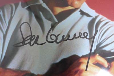 What a rare one! Our best in-Person star chaser in the UK gave us now his last GIANT 12x14 (40.5 cm x 30.5 cm) SIR SEAN CONNERY AUTOGRAPHS. Signed in-Person for him in Edinburgh, Scotland where Sean was regulary for part time of the year in Edinburgh. This signature was obtained directly from Sir Sean. It is nearly impossible to get todays even new signed 8x10s....but especially not 12x16 sized photos! Awsome in-Person signature from Sir Sean Connery. Meanewhile nearly nothing new stuff comes to the market as he keeps a very private life since years now. Get a good one from b'bc with proof!