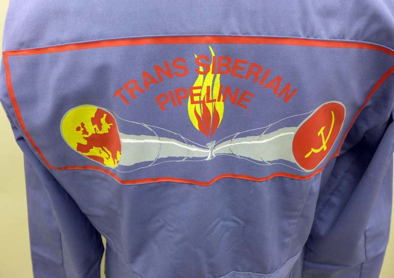 A WONDERFUL PIECE OF JAMES BOND HISTORY! "Rosina Miklos" major jumpsuit used in John Glen's The Living Daylights. Bond’s (Timothy Dalton) connection Rosika Miklos (Julia T. Wallace) wore her jumpsuit inside the Trans Siberian pipeline as she created a distraction to help smuggle KGB agent General Koskov (Jeroen Krabbé) out of Russia.