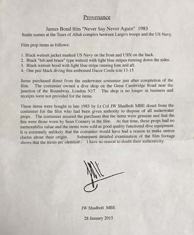 We got hold for a very rare screen used James Bond - Never Say Never Again Spectre Agents diving suit.