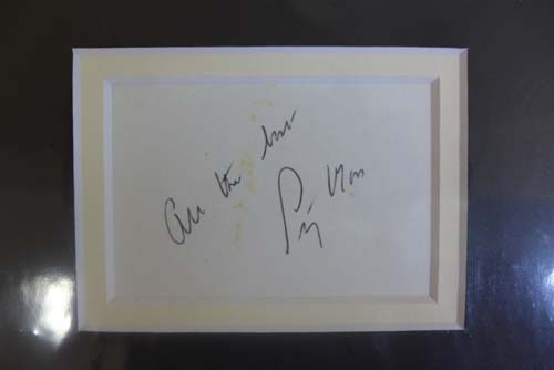 WHAT A RARE ONE! Fantastic color shot of WORLD FAMOUS CAR RACER STIRLINIG MOSS, PICTURED IN HIS ROLE WITH HIS CAR IN CASINO ROYALE 1967 WHICH WAS TAKEN AS "JAMES BOND - TEAM LOTOS" CAR. EXTREMELY RARE AUTOGRAPH ON AN ALBUM PAGE AND PERFECTLY TRIPLE MATTED WITH A COLOR SHOT SHOWING HIM IN THE 007 ADVENTURE. READY TO FRAME AND HANG ON YOUR WALL! FOR THE SCANS WE DID NOT UNPACK THE MATT SO YOU SEE IT TROUGH THE PLASTIC FOILE WHICH PROTECTS THE MATT. WITHOUT THE PLASTIC FOILE IT LOOKS OF COURSE WAY BETTER! TAKE THE CHANCE AS THIS IS A REAL ONE-OFF PIECE!