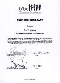 We are pleased to present our new WORLD EXCLUSIVE selection of autographs from VIRGINIA HEY WHO PLAYED THE ROLE OF "RUBAVICH" IN THE LIVING DAYLIGHTS. Virginia signed these autographs directly and officially world-exclusive for b'bc by contract within our latest signing in March 2018. Buy with confidence from b'bc. Wholesale prices for dealers! Please ask!