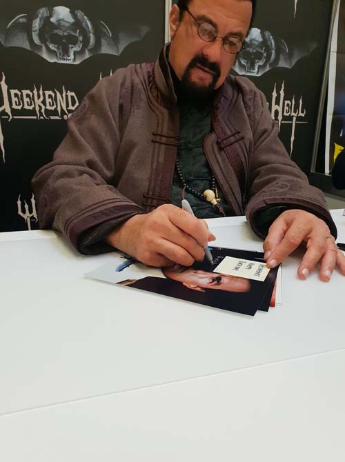 What a rarity! WE got Steven Segal in-Person at the German Weekend of Hell on Nov. 3/4 2018. He did an official signing there. Only a few Bond fans do know the following fact: Steven Segal was the stunt coordinator and Trainer for Sean Connery in 007'S NEVER SAY NEVER AGAIN. He is extremely rare to get and we never saw him on a Bond shot before! Take the Chance to get this in-Person with proof Steven Segal JAMES BOND Autograph!