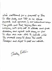 Shirley Eaton Autograph, her own poem from Cubby's Memorial