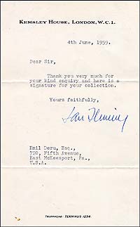 Ian Fleming Autograph, yellow letter page with his own printed letterhead - signed original by Ian Fleming!