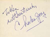 CHARLES GRAY Autograph, 3x5 offwhite card