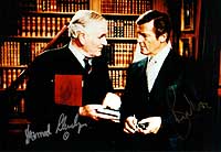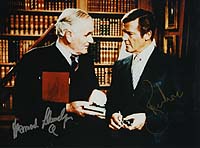 Roger Moore & Desmond Llevelyn Cast Autograph, 8x10 color shot