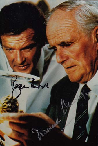 Sir Roger Moore & Desmond Llewelyn Cast Autograph, 4x6 color shot