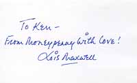 Lois Maxwell Autograph, 3x5