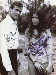 Roger Moore & Joie Vejjajiva Cast Autograph, 8x10 bw shot
