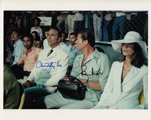Roger Moore & Christopher Lee Cast Autograph, 8x10 color shot