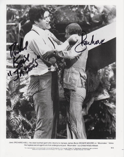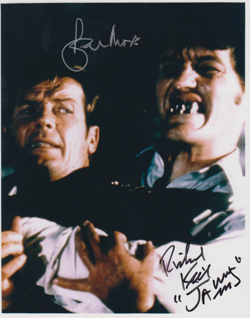 Roger Moore & Richard Kiel Cast Autograph, 8x10 color shot