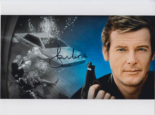 Sir Roger Moore & Richard Kiel & Michael Lonsdale Cast Autograph, 8x10 bw shot