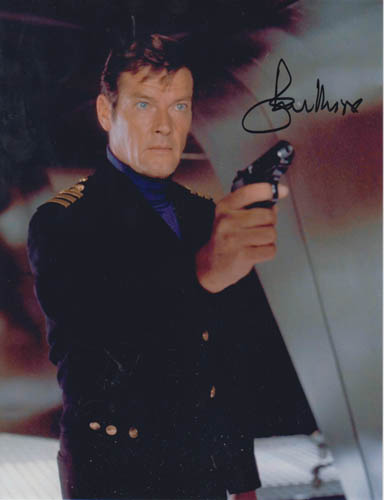 Roger Moore WITH 007 JAMES BOND ADDITION AND MATCHING SINGING PHOTO! Autograph Official Signing, 8x10 bw vintage still