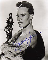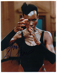 Roger Moore & Grace Jones Cast Autograph, 8x10 bw shot