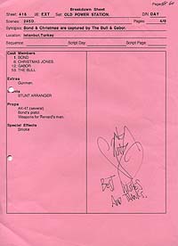 Goldie Document, ORIGINAL TWINE PRODUCTION BREAKDOWN SHEET