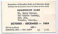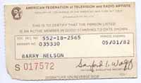 Barry Nelson Document, Original "Oscar" Association Membership Card